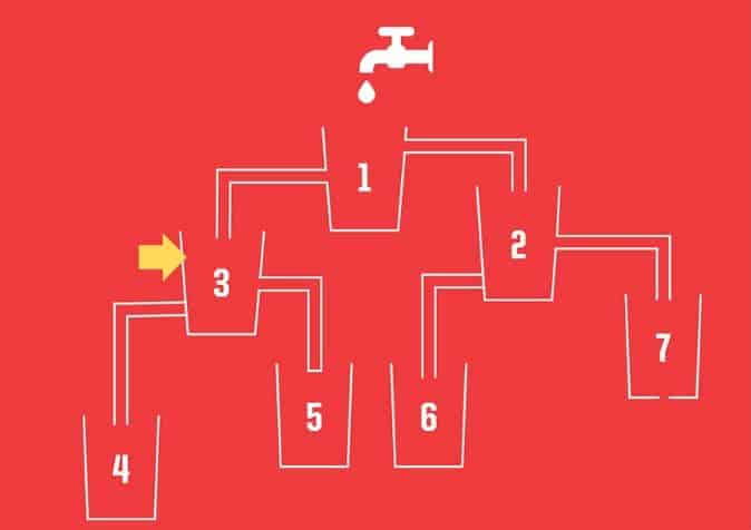 A kép, amit mindjárt meglátsz, 7 poharat ábrázol, amelyeket csapok és csövek kötnek össze. A feladatod egyszerű – legalábbis első ránézésre: találd ki, melyik pohárba érkezik meg először a víz. Vigyázat, ez alattomosan becsapós!