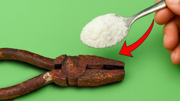 Az ecet savtartalma és a só durva szemcsés állaga együtt rendkívül hatékony. A keverék felviselése után a rozsda szinte leolvad a fémről.