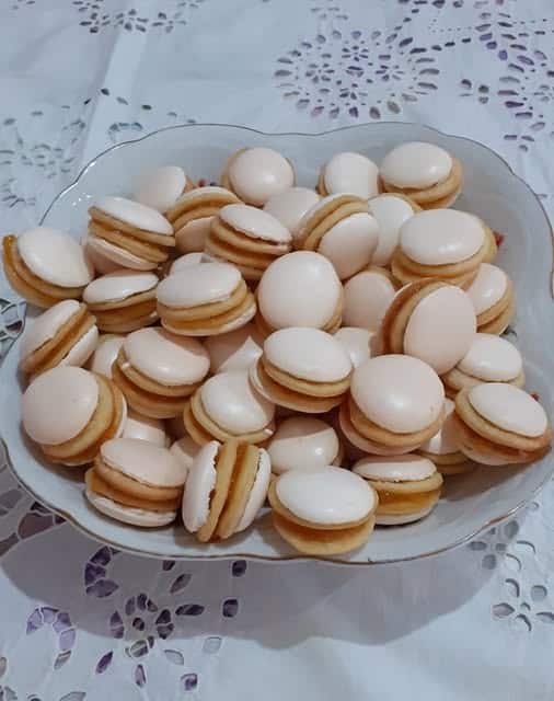 7. A tojáshabot sima végű díszítőcsővel felszerelt habzsákba töltjük és körkörös mozdulattal a kisült non plus ultra korongokra nyomjuk.