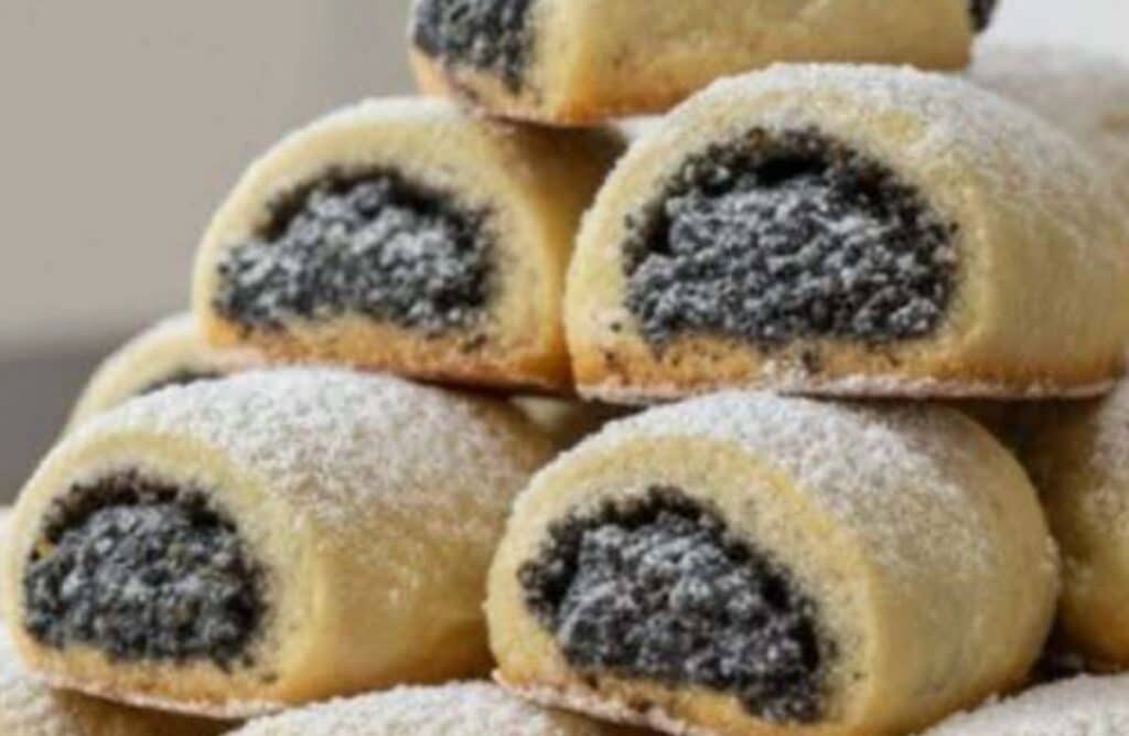 A tésztához a lisztet összekeverjük a porcukorral és a sóval, majd a hideg vajat gyors mozdulatokkal beledolgozzuk, hogy morzsás állagot kapjunk. Ezután hozzáadjuk a tejfölt, és addig gyúrjuk, amíg a massza sima és rugalmas lesz. Fóliába csomagolva fél órára hűtőbe tesszük pihenni. Közben elkészítjük a tölteléket: a tejet a cukorral felforraljuk, majd belekeverjük a darált mákot, a mézet és a citromhéjat, végül hagyjuk teljesen kihűlni. A tésztát több részre osztva vékony, téglalap alakú lapokká nyújtjuk, a közepükre mákos tölteléket simítunk, majd szorosan feltekerjük őket. A rudakat 5–6 centis darabokra vágjuk, sütőpapírral bélelt tepsire rakjuk, és 180 °C-on nagyjából 20–25 perc alatt aranyszínűre sütjük. Miután kihűltek, porcukorral meghintve tálaljuk, hogy teljesen érvényesüljön az omlós tészta és a fényes mákos töltelék tökéletes egyensúlya.