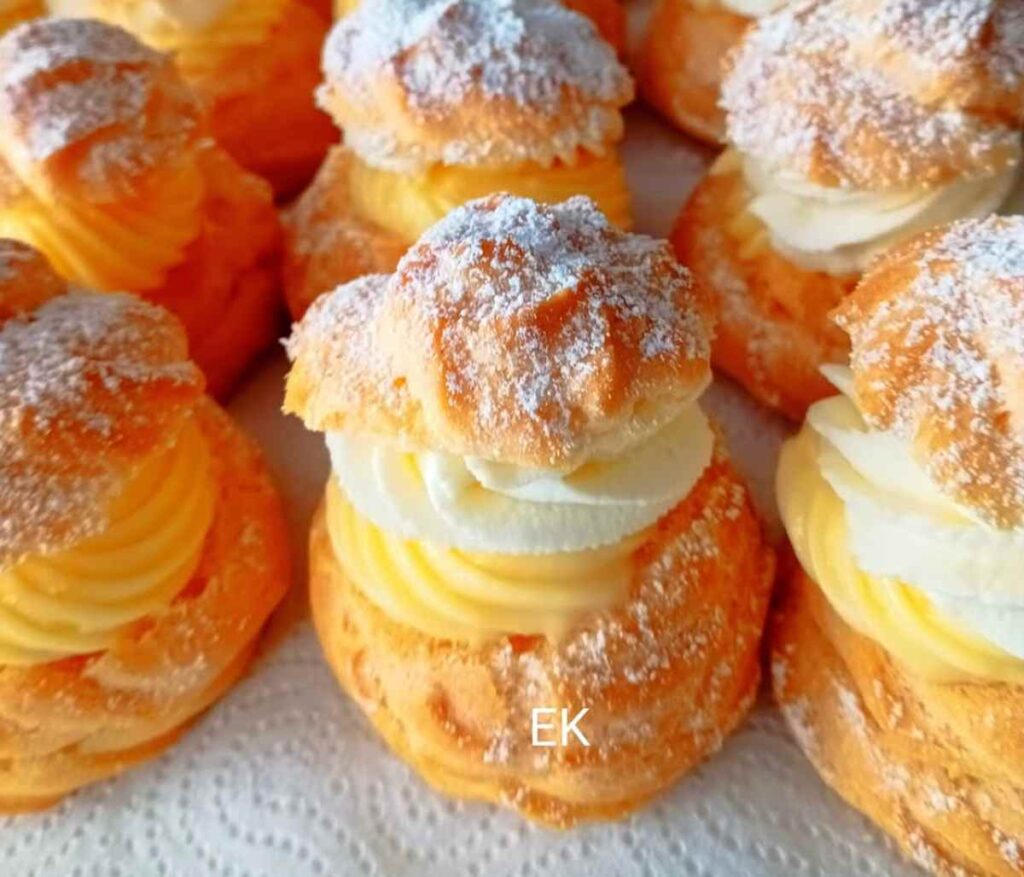 A fánkokat 200 °C-on körülbelül 20 percig sütöm, majd a hőfokot 170 °C-ra csökkentem, és további nagyjából 20–25 percig sütöm. A sütés alatt a sütőajtót nem szabad kinyitni, mert a gőz távozásával a fánkok összeeshetnek. Amikor szépen megemelkedtek és aranybarnák, a sütő ajtaját egy fakanállal kitámasztom, és a fánkokat így hagyom teljesen kihűlni.