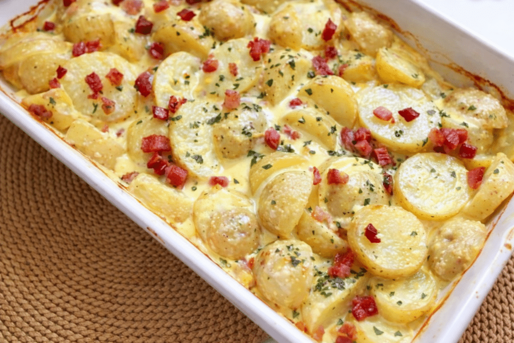 Ez a fogás nem a hagyományos olasz recept pontos másolata, inkább egy magyaros, otthoni változat. De talán éppen ezért működik ennyire jól. Egy tál forró, krémes burgonya a sütőből kivéve mindig jó döntésnek tűnik, különösen akkor, amikor az ember valami egyszerűen finomra vágyik.