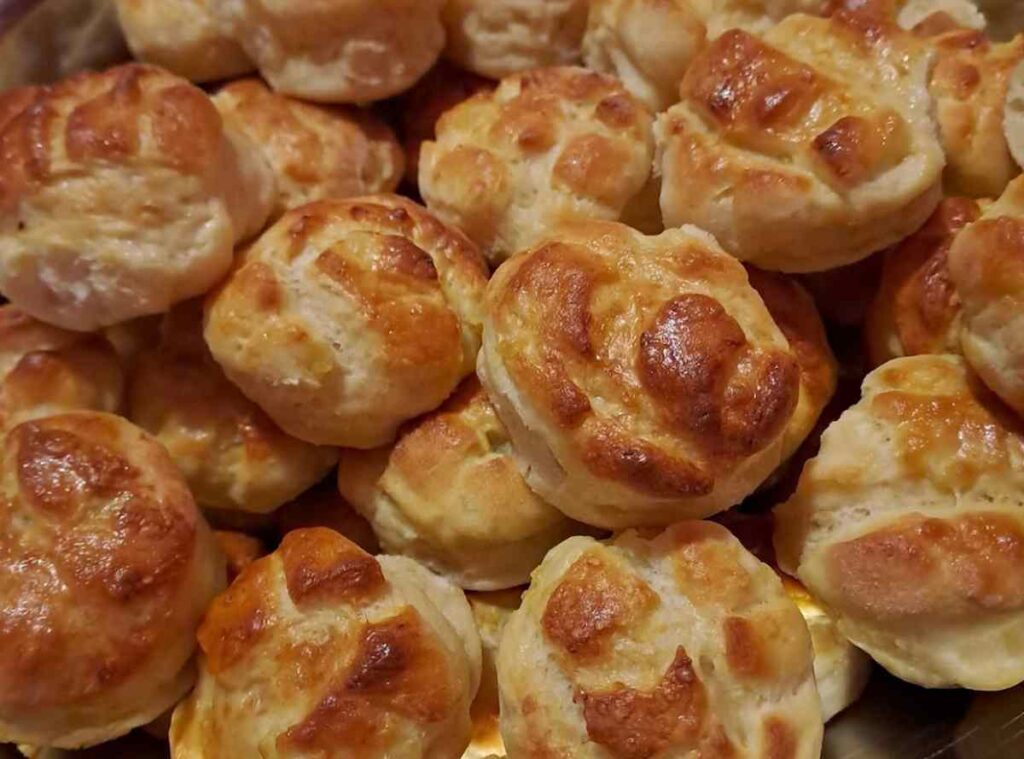 A tetejére egy felvert tojás kerül, ahogy az lenni szokott, mert ettől kapja meg azt a színt, amitől pogácsa a pogácsa.