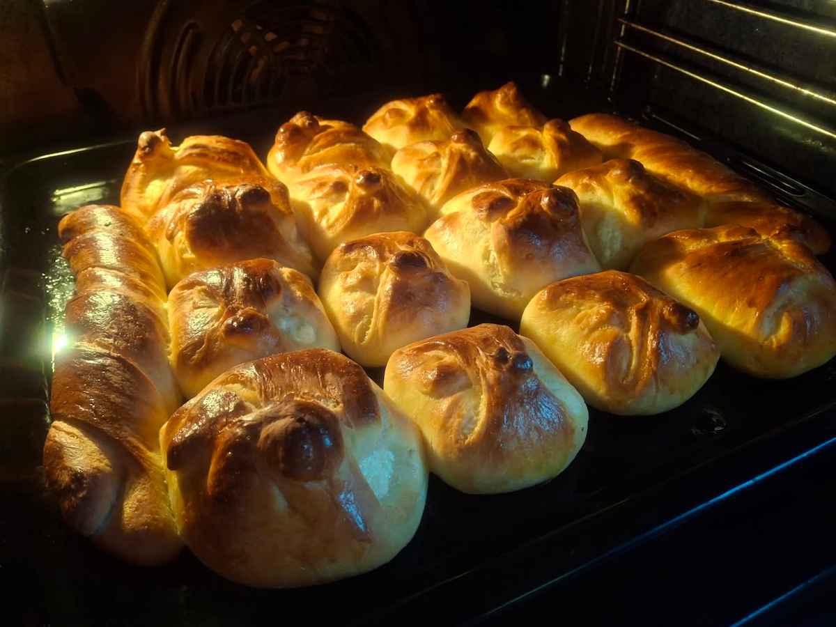 A megkelt tészta ilyenkor már együttműködik. Könnyű vele dolgozni, nem ragad, nem ellenkezik. A darabokra osztott tésztába kerül a töltelék, majd a bukták szorosan egymás mellé fekszenek a tepsiben.