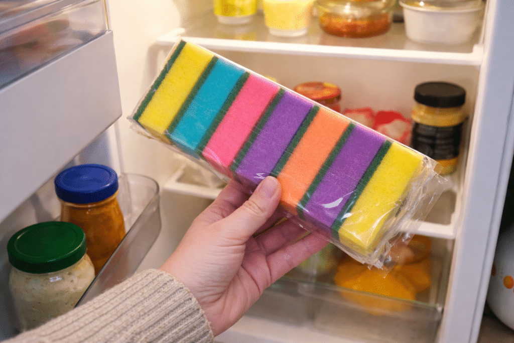 A mosogatószivacs alapvetően folyadék felszívására készült. Ha teljesen tiszta, új darabot teszünk a zöldségesfiókba, az képes magába szívni a felesleges nedvességet.