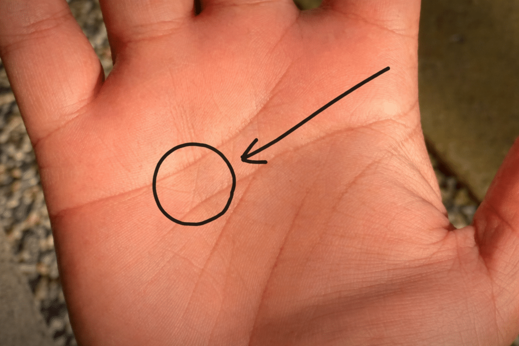 Kereszt a tenyér közepén és a hüvelykujj alatt