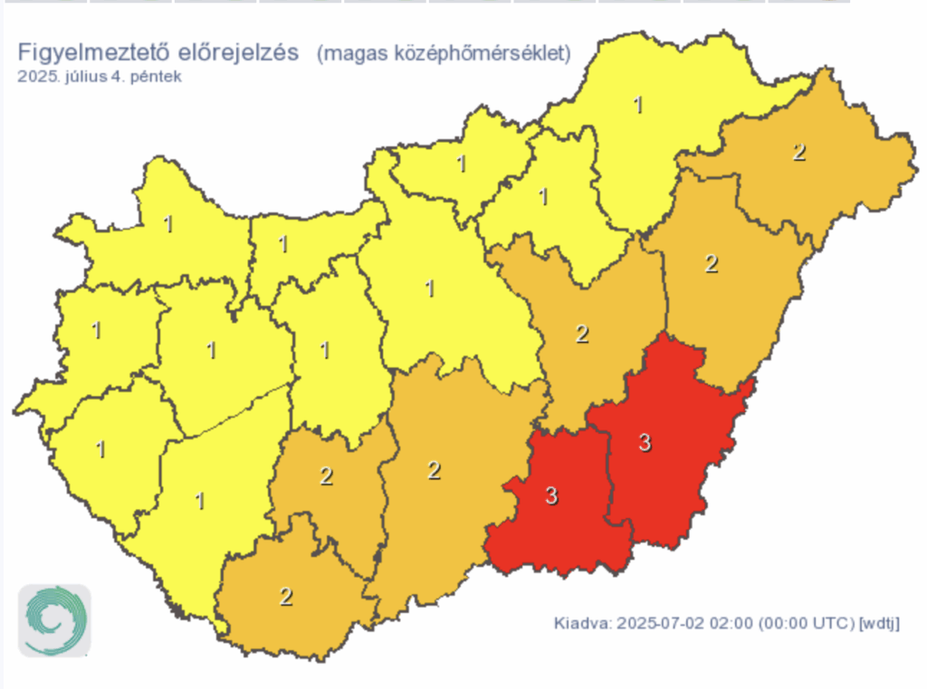A héten pénteken lesz a legmelegebb, erre veszélyjelzést is kiadott a met.hu, mutatjuk térképen: