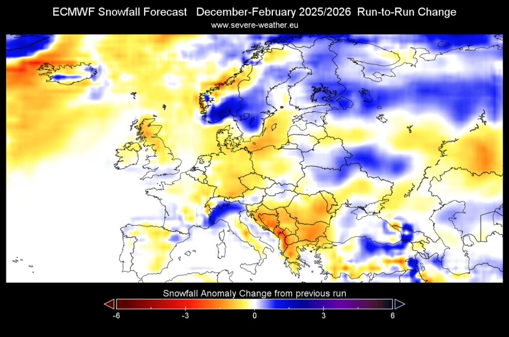 A legfrissebb európai modellek – köztük az ECMWF és az UKMO – most betekintést engednek abba, hogyan alakulhat a tél a kontinensünkön. Az ECMWF decemberi előrejelzése alapján a hónap első felében kevesebb hó várható, különösen Közép- és Dél-Európában. A legtöbb hóesés az északi régiókban, Skandináviában és a Balti-térségben valószínű.