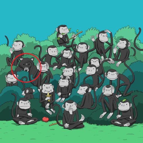 A következő képen egy medve rejtőzött el – de nem akárhogy! A sok majom között bújt meg, és csak a legélesebb szeműek veszik észre. Készen állsz egy gyors agytornára? Tedd próbára magad, és nézd meg, meg tudod-e találni 5 másodperc alatt!