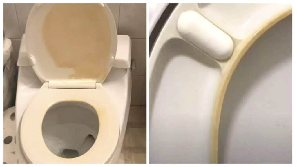 Az elszíneződés mögött több tényező állhat. A vízkő és a vizeletben található karbamid apró pórusokba rakódhat le, különösen, ha a felület már nem teljesen sima. A kemény víz ezt a folyamatot tovább erősítheti.