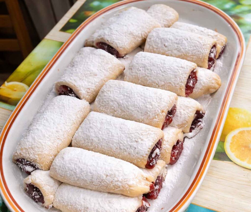 Amikor kivesszük őket a sütőből, még puhák, de gyorsan szilárdulnak. Langyosan porcukorba forgatjuk őket, ami rátapad a felületre, és pont annyit ad hozzá, amennyi még nem nyomja el a lekvár ízét.