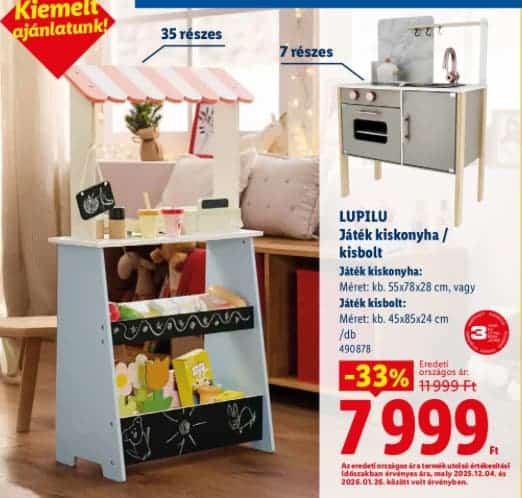A kínálatban egy játékkonyha és egy kisbolt is helyet kapott, amelyek március 26-tól 11 999 forint helyett mindössze 7 999 forintért lesznek elérhetők.
